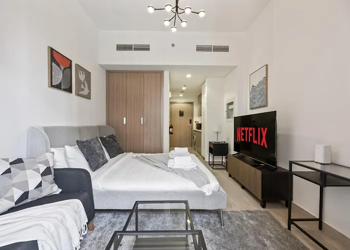 Die 28 m² große Ferienwohnung Elite Escape - Getaway In Azizi Riviera 26 Dubai befindet sich in Dubai circa 4 Kilometer von der Dubai Mall entfernt, und bietet einen Swimmingpool und ein Fitnesscenter. Die Wasserspiele von Dubai ist in circa 10 Autominuten Entfernung von diesen Apartments.